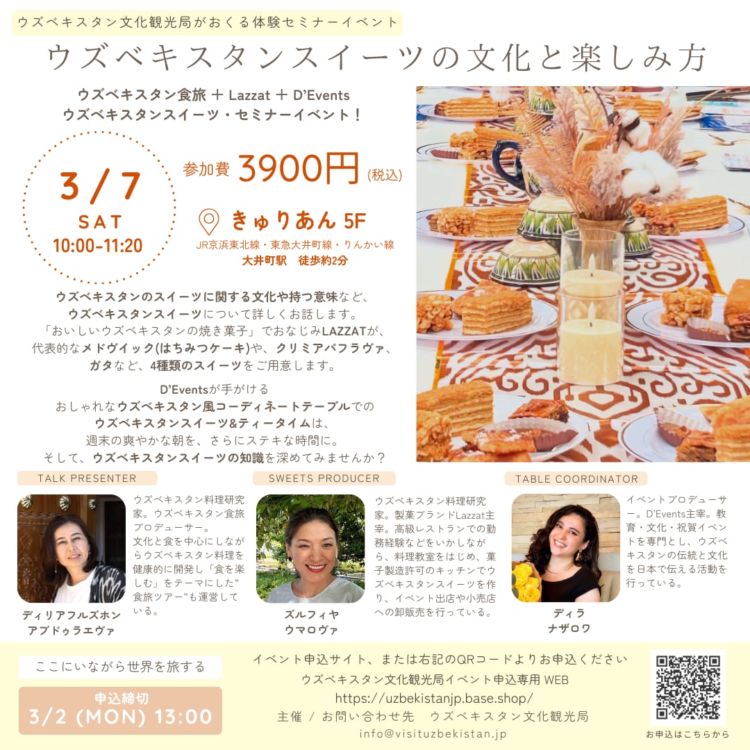 3月7日 セミナーイベント「ウズベキスタンスイーツの文化と楽しみ方」